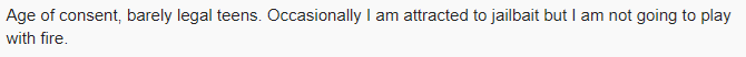 He had also admitted to the other forum members that he was attracted to girls under the age of consent, which he referred to as “jailbait,” though he assured them that he refrained from acting on his desires: